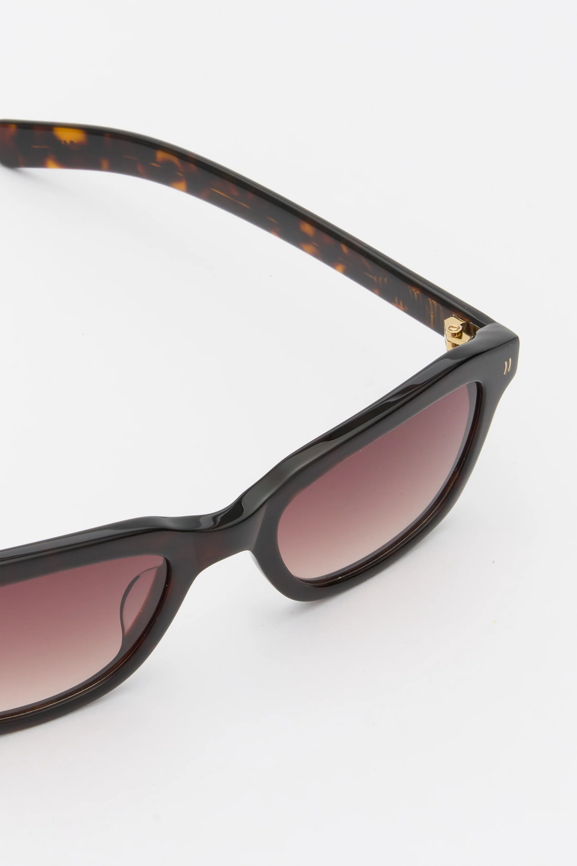 Clint Dark Tortoise/Brown Gradient Lens from Flatlist Eyewear. The glasses are made of handmade acetate. They have scratch-free lenses with 100% UVA/UVB protection and come in a box with case and microfiber cloth.