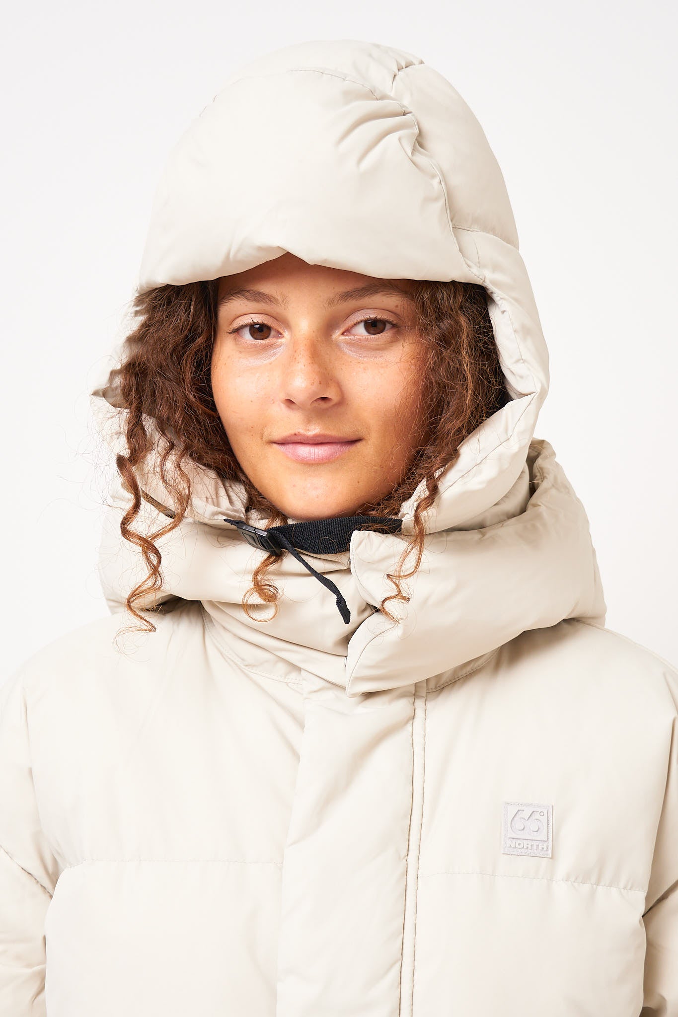Dyngja Puffy Hat Dark Stone from 66°North. This hat is made of polyamide. It is designed with a fold at the front, long ears, and can be closed and tightened around the chin.