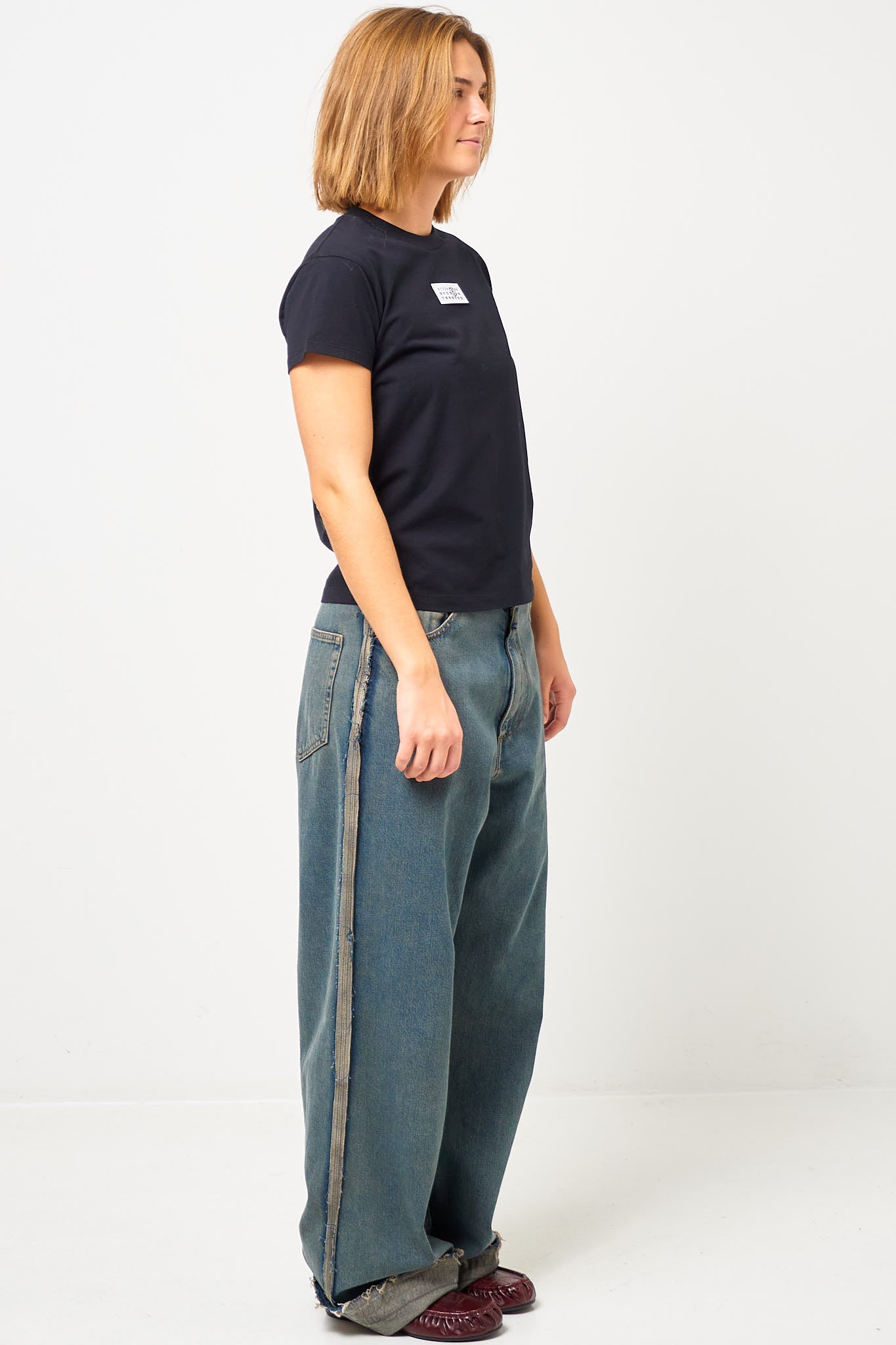 This t-shirt is made from a soft cotton. It has a slim fit with short sleeves and a round neckline. The t-shirt has an MM6 Maison Margiela logo on the chest.