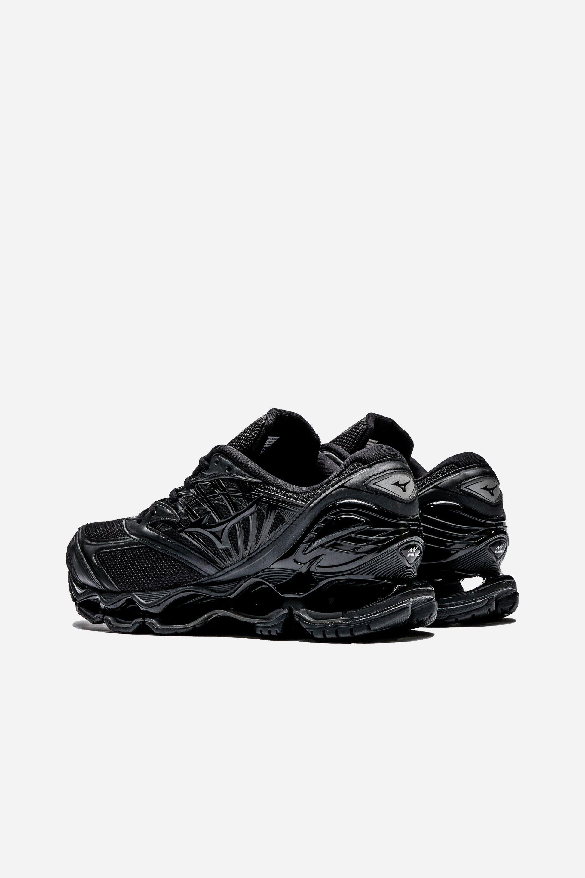 Wave Prophecy LS Black/Black/Black from Mizuno. These sneakers are made of mesh and have Mizuno Wave Technology, which provides better stability and dynamic shock absorption. They are designed with laces and Mizuno logo on the sides and on the tongue.