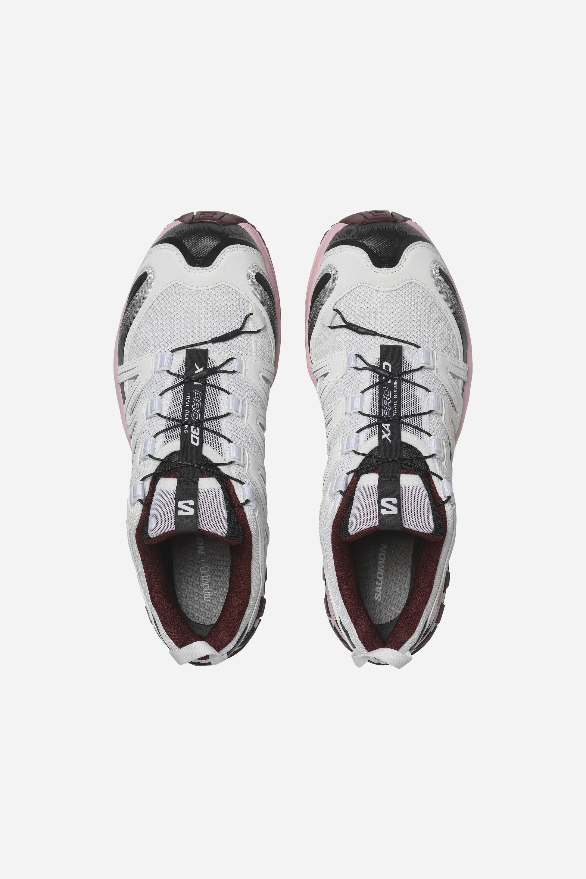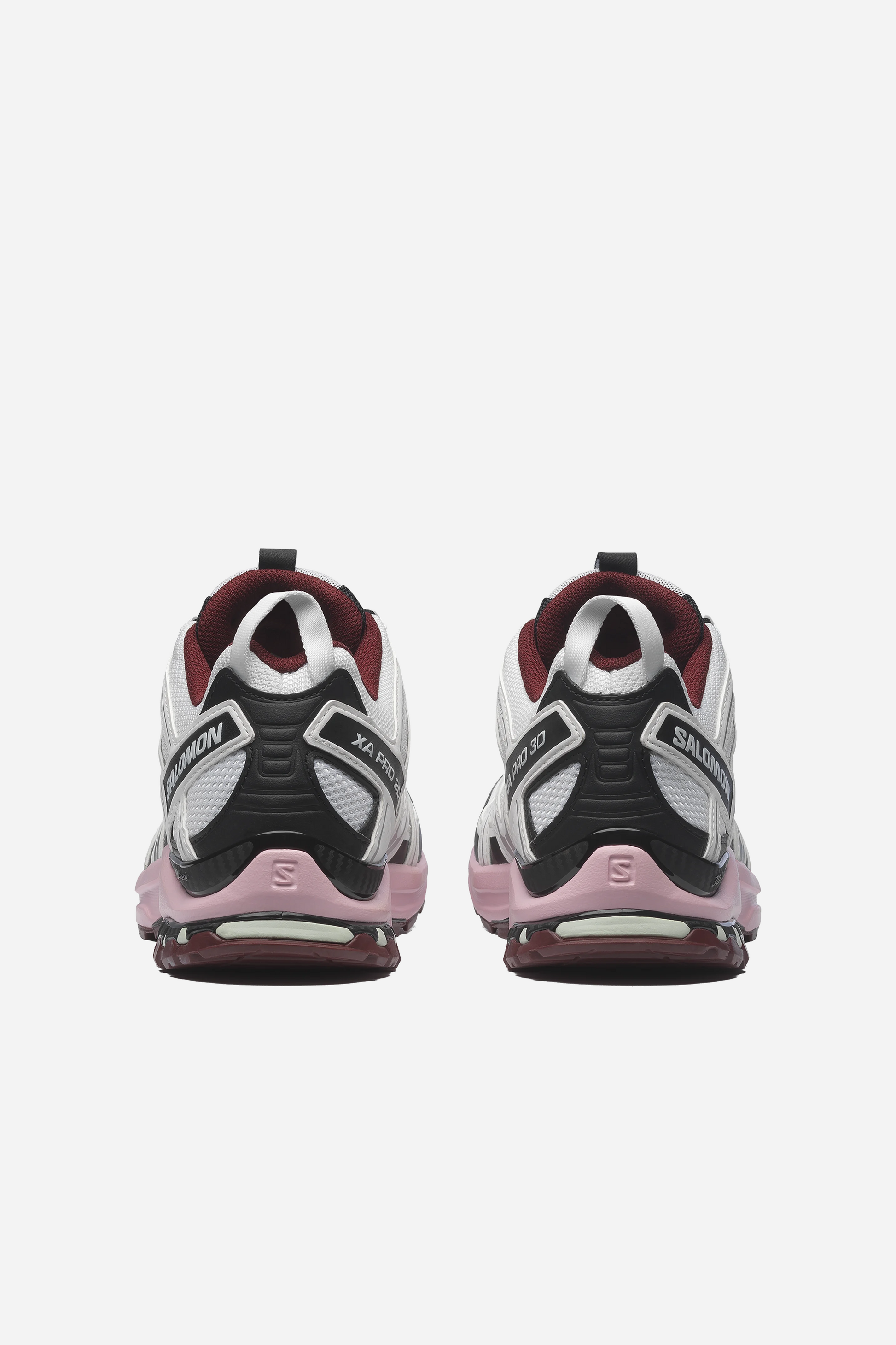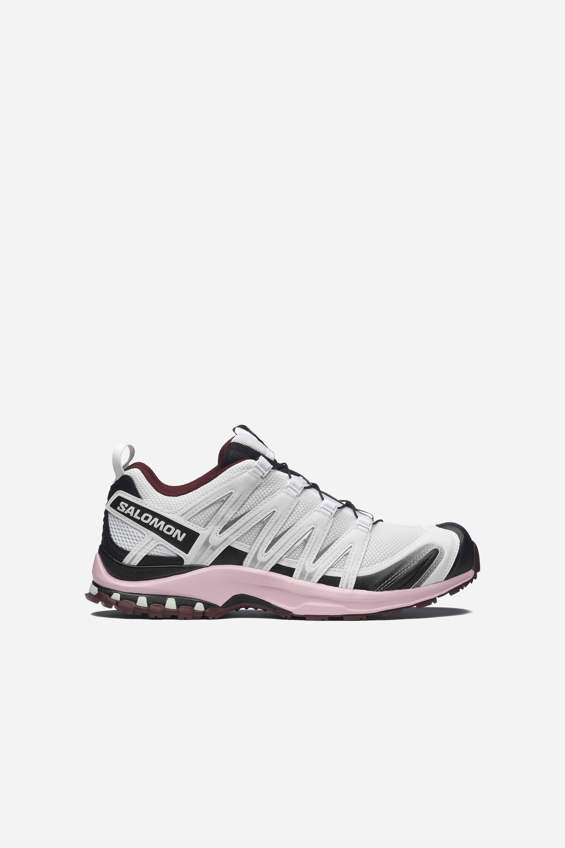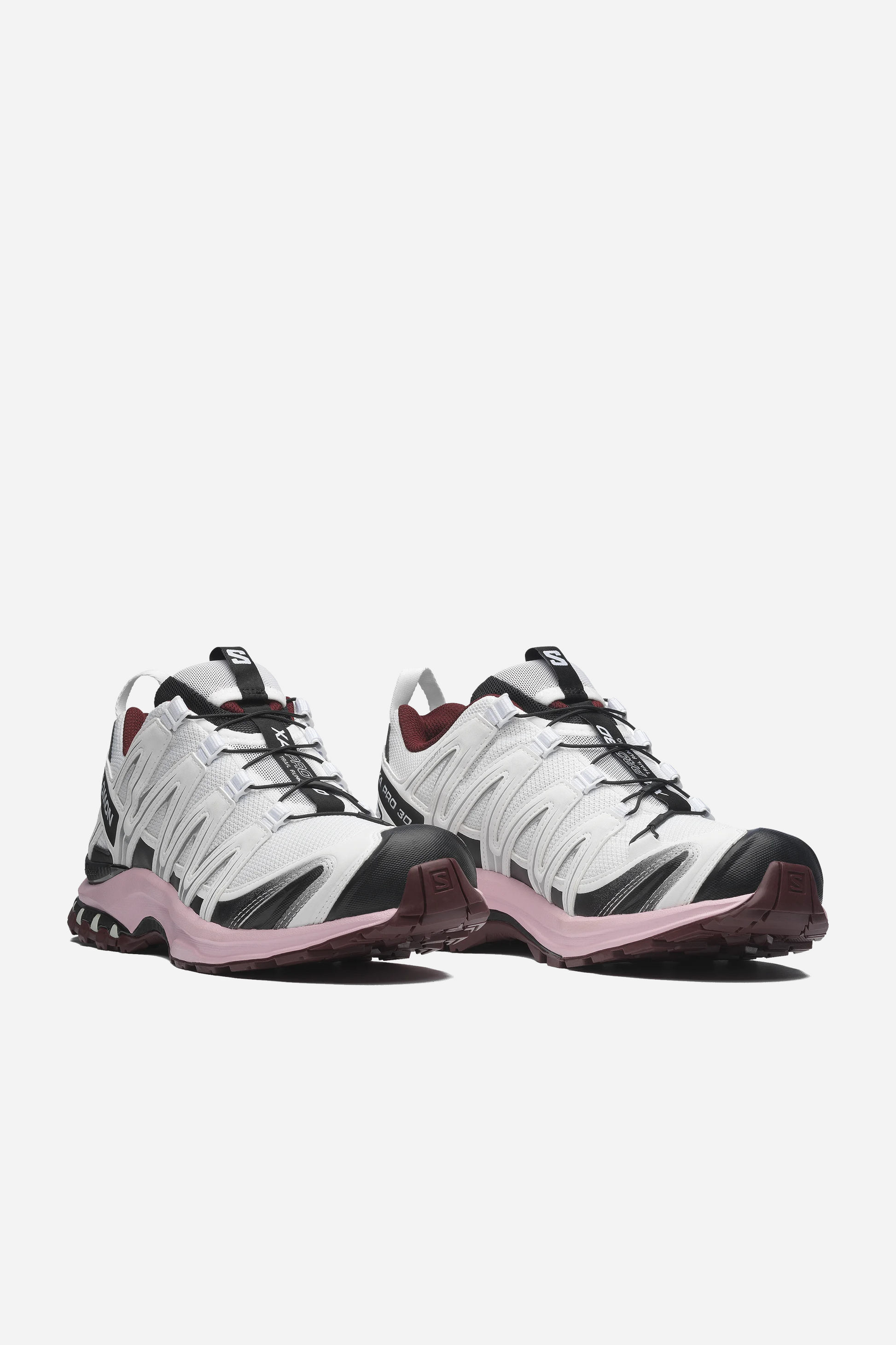 XA Pro 3D White/Black/Fairy Tale from Salomon. These sneakers are designed with mesh and rubber. They have the classic Salomon logo on the inside and outside. These sneakers are closed and tightened with laces.