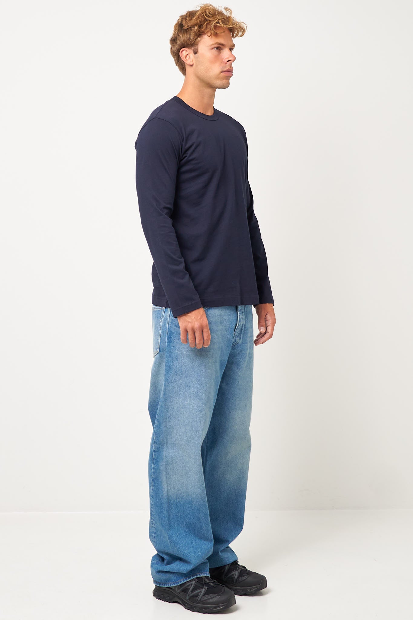 CDG Forever L/S T-Shirt Navy from Comme des Garçons SHIRT. This long-sleeved t-shirt is made of cotton. It is designed with a regular fit, a round neckline and long sleeves. The t-shirt has a printed Comme des Garçons SHIRT logo at the top of the back.