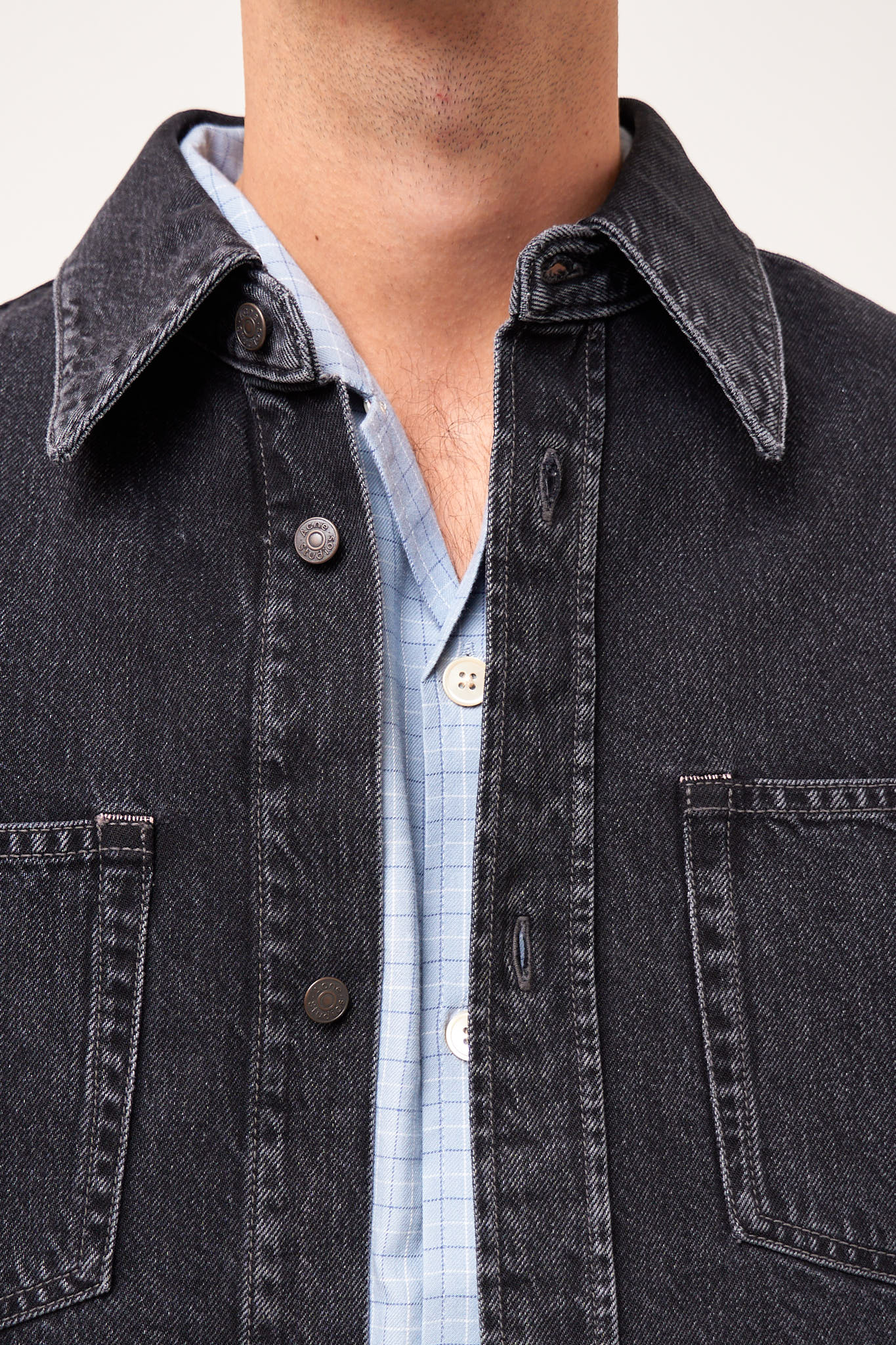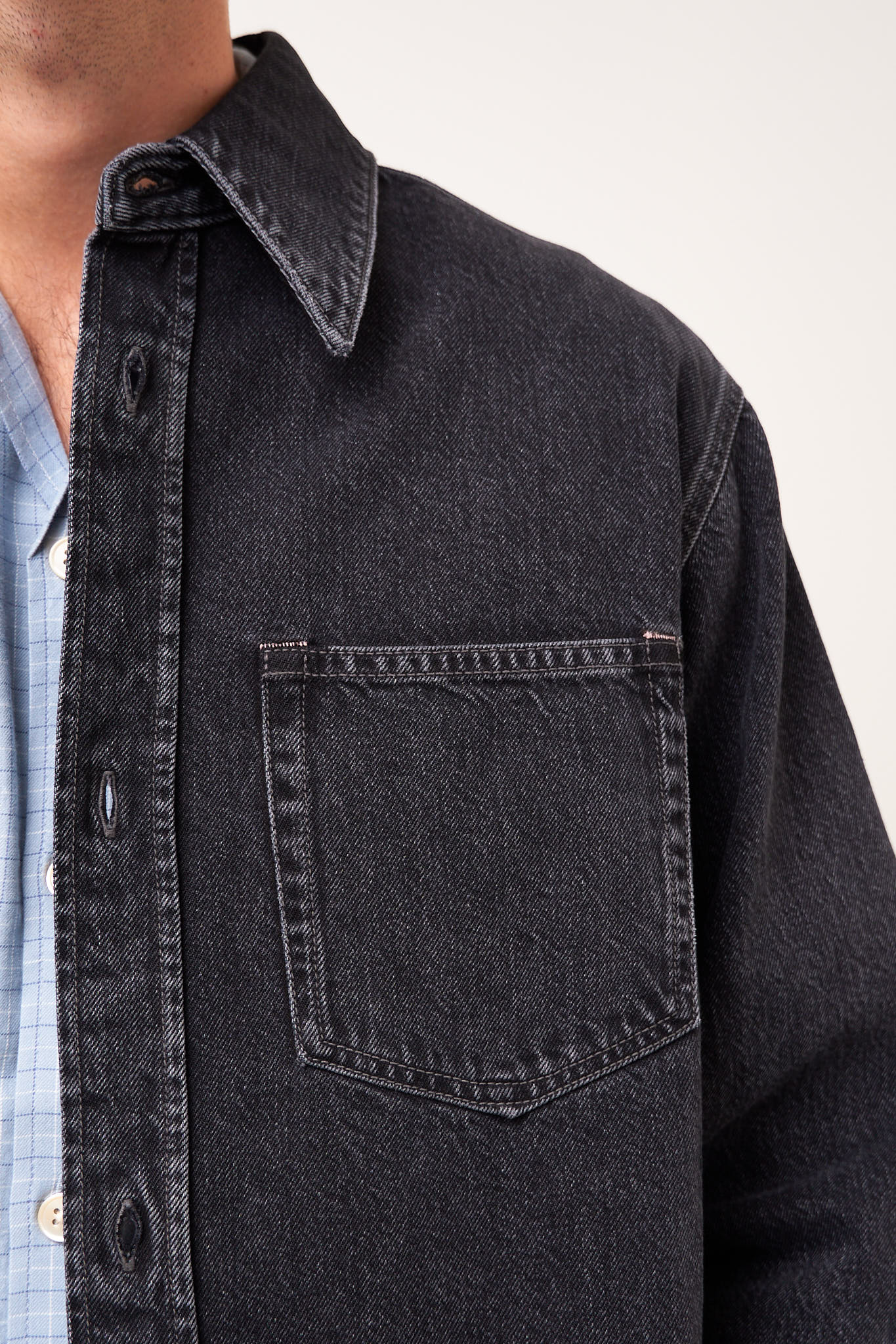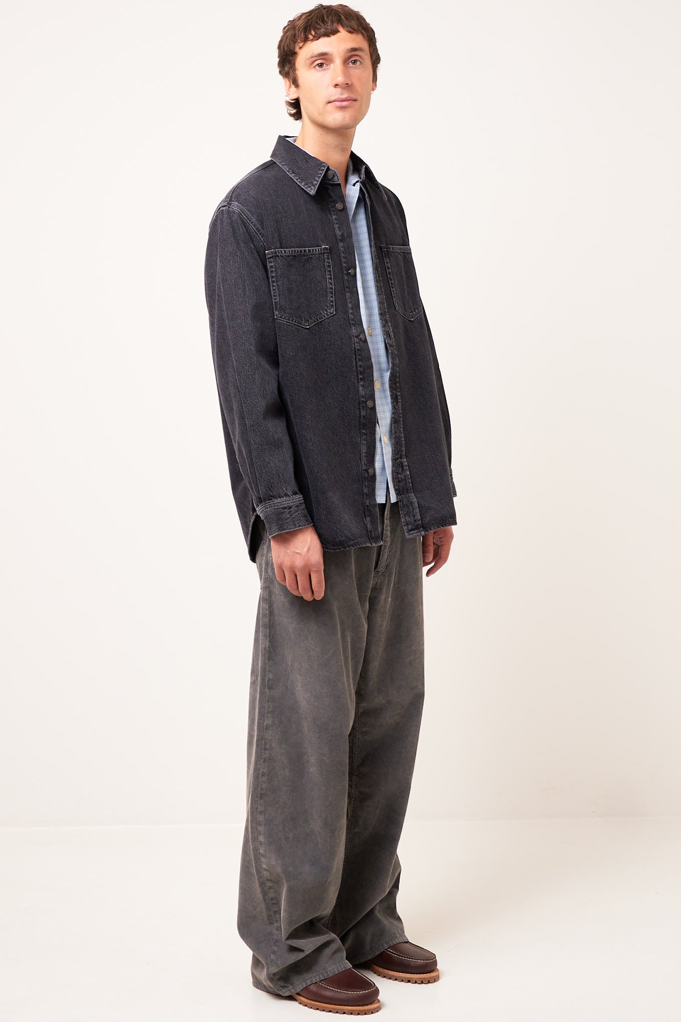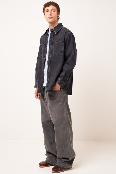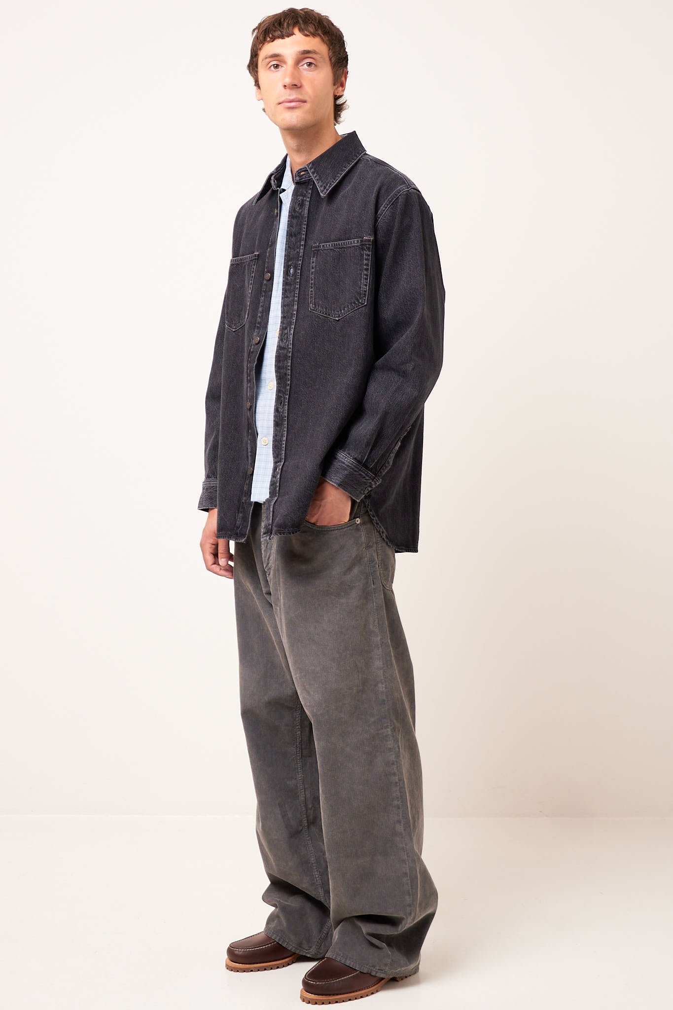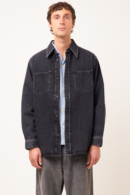 Denim Button-Up Shirt Black from Acne Studios. This denim shirt is made from a heavy cotton. It is designed in an oversized fit with two larger chest pockets and an Acne Studios logo at the neck.