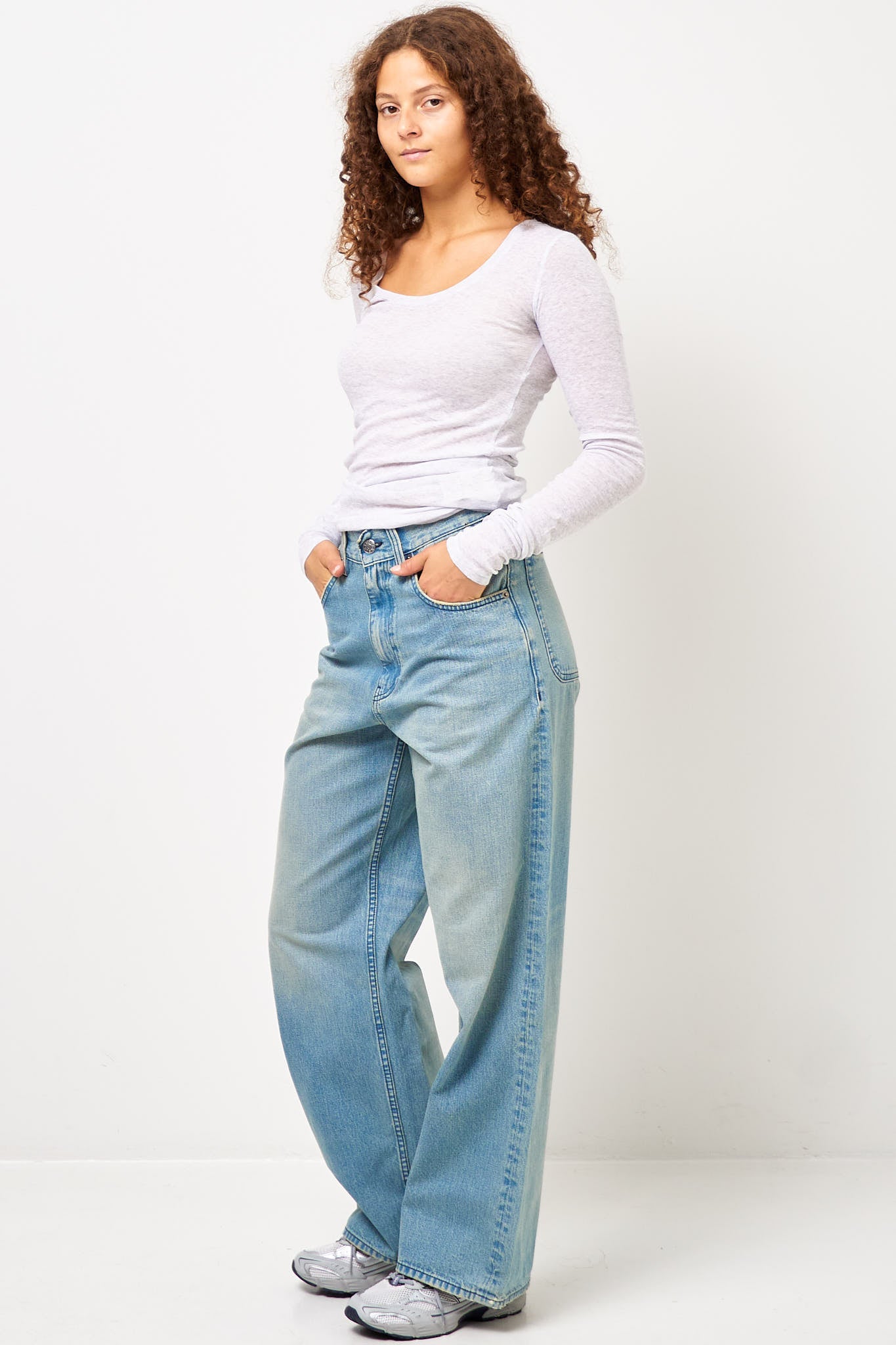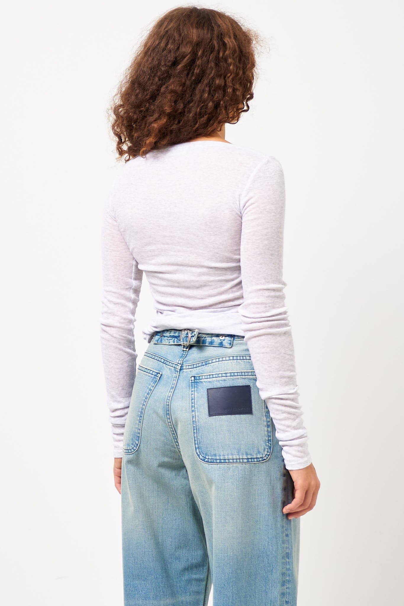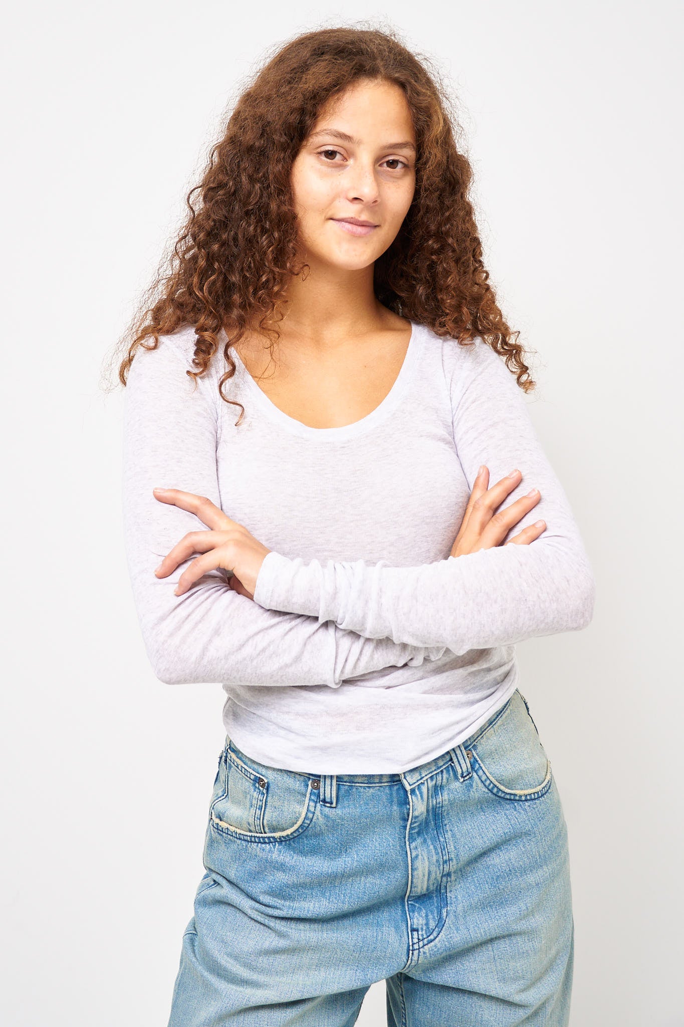 Massachusetts LS T-shirt Heather Grey from American Vintage. This top is made of cotton. It is designed with a deep round neckline, long sleeves and has a tight fit.