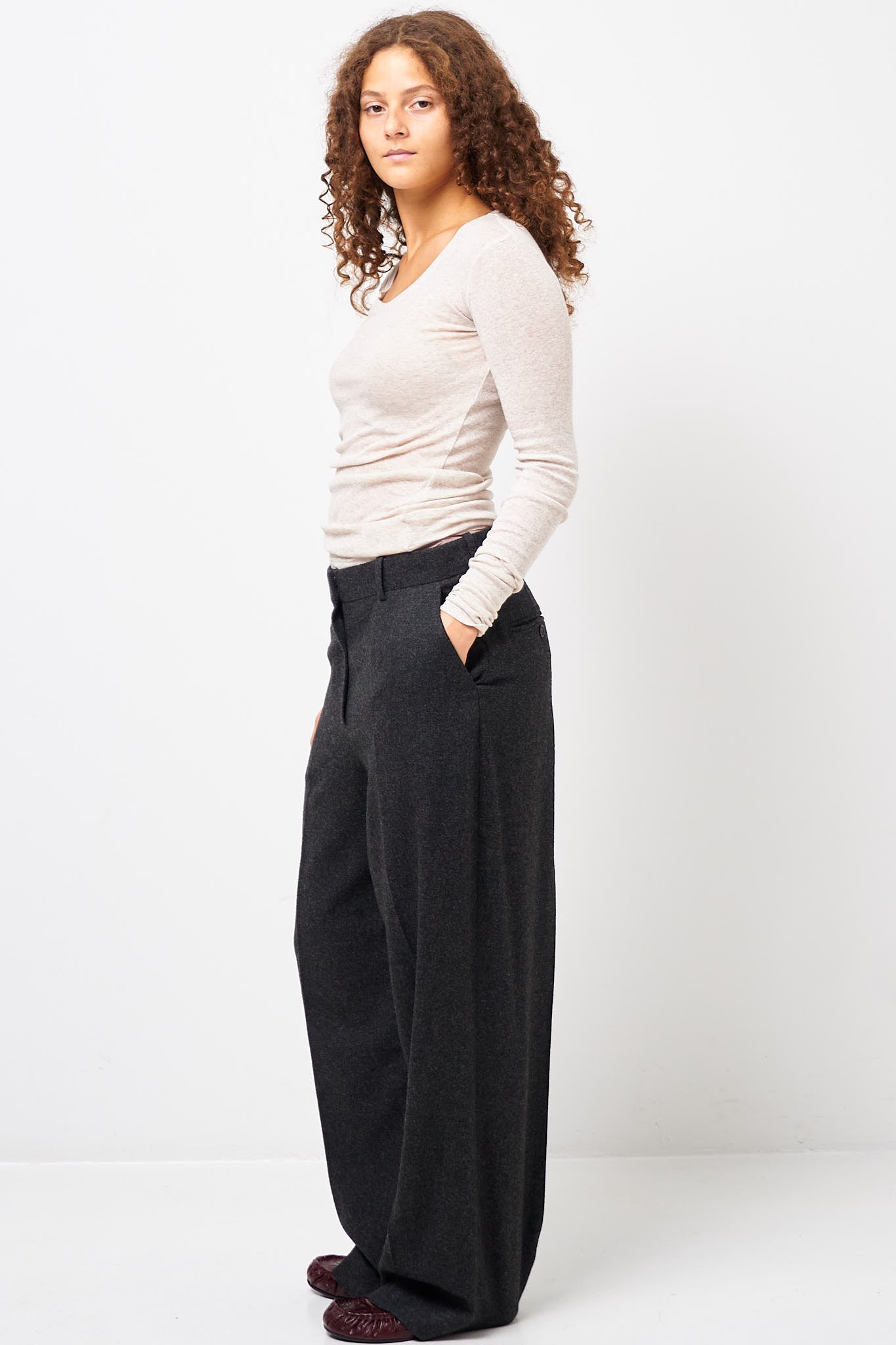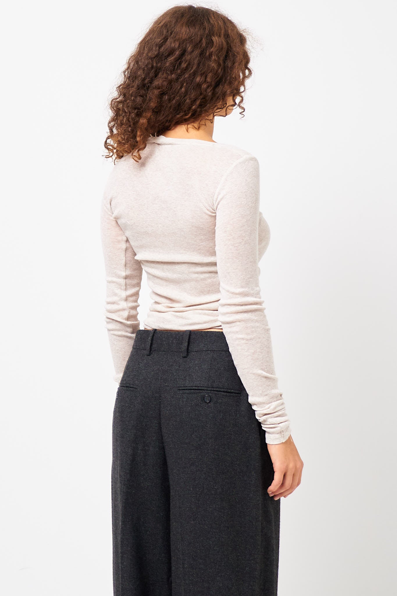 Massachusetts LS T-shirt Cream Melange from American Vintage. This top is made of cotton. It is designed with a deep round neckline, long sleeves and has a tight fit.