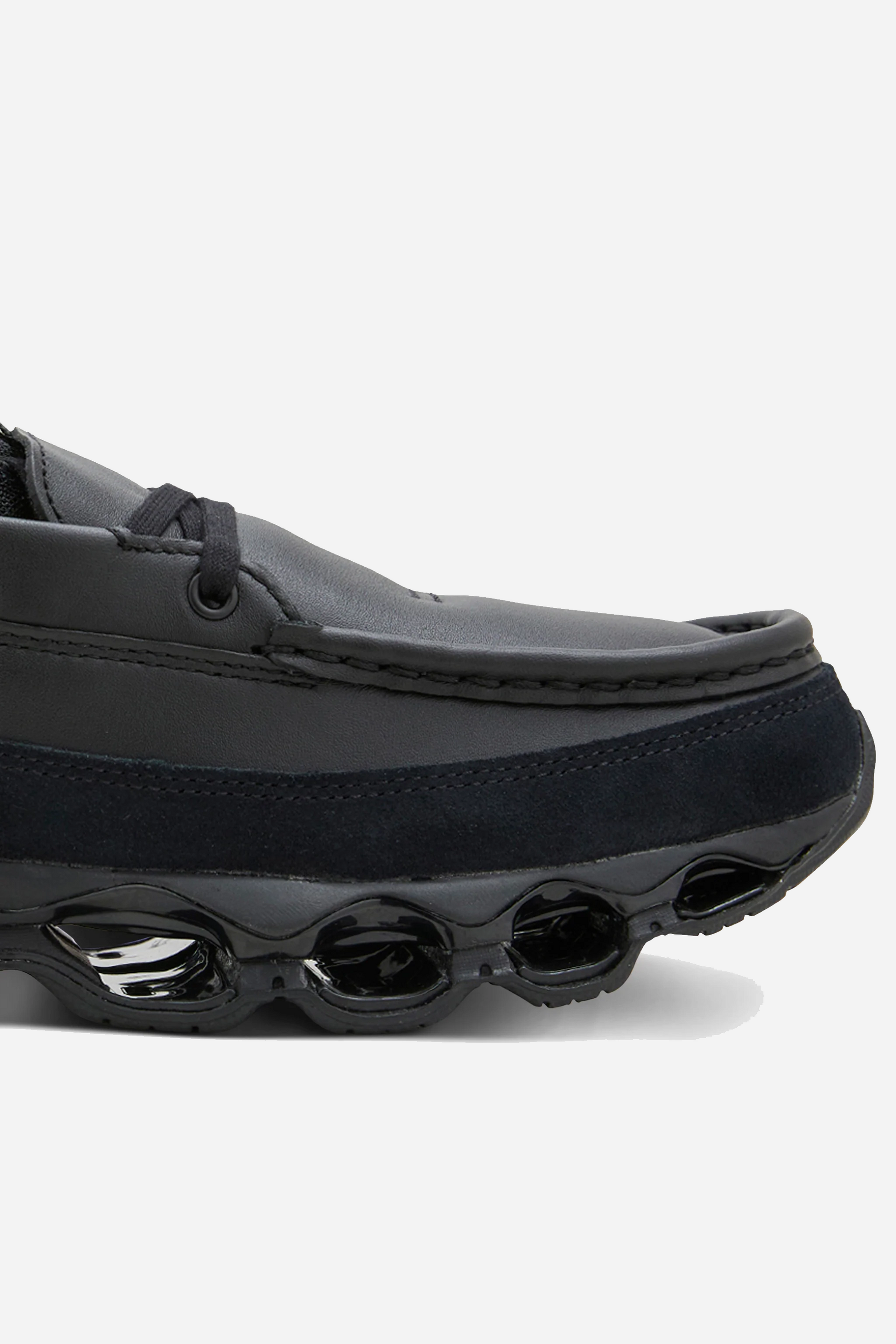 Wave Prophecy Moc Black from Mizuno. These sneakers are made of leather and have Mizuno Wave Technology, which provides better stability and dynamic shock absorption. They are designed with laces.