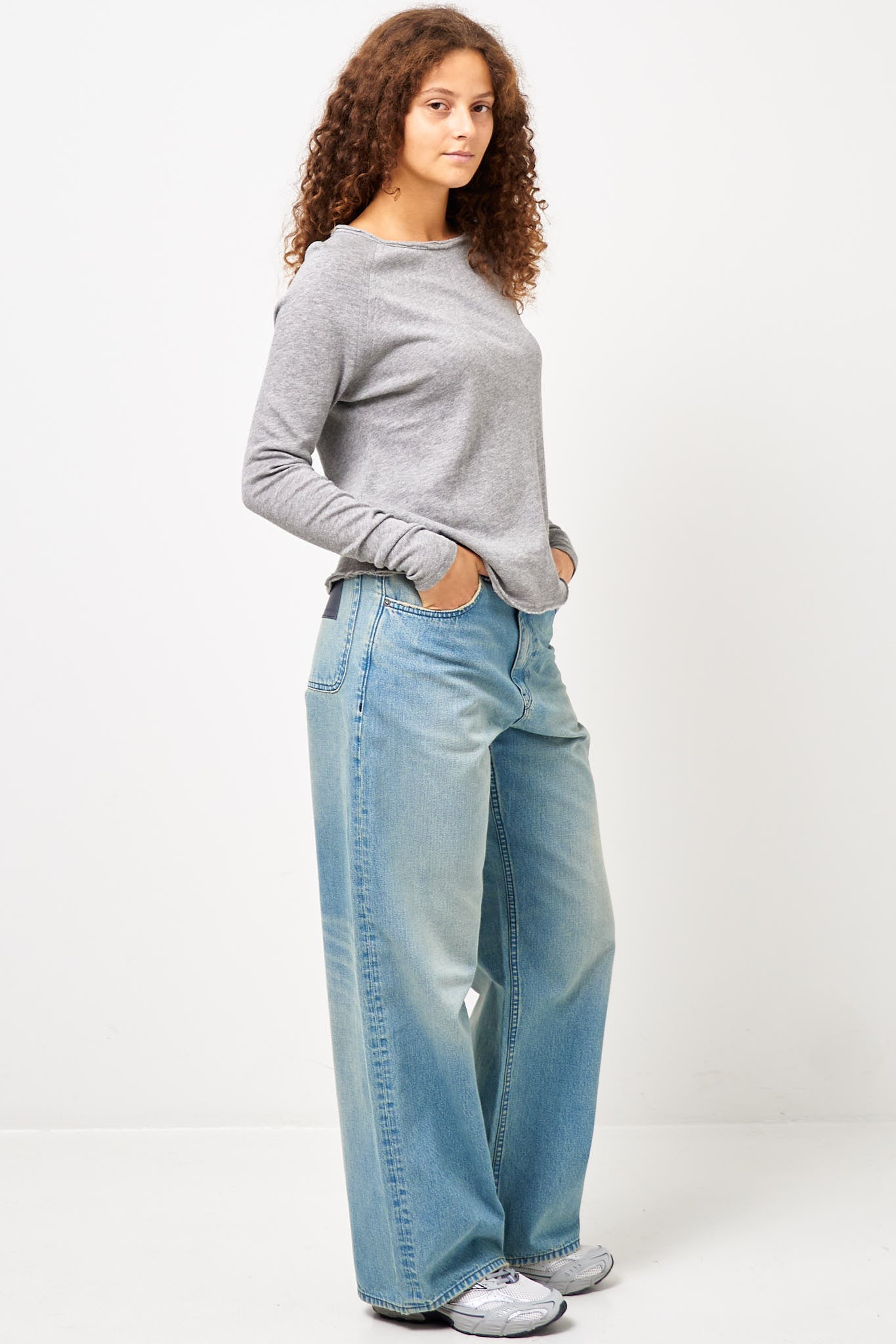 Sonoma L/S T-shirt Heather Grey from American Vintage. This t-shirt has a relaxed fit. Made from pure cotton, it is designed with a wide crew neckline, long sleeves and raw edges at the neckline, cuffs and hem.