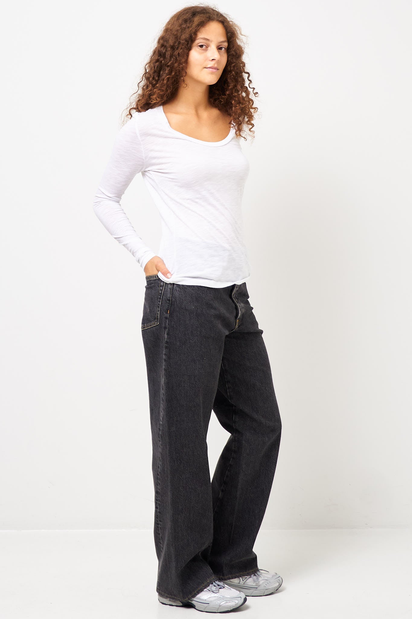 Jacksonville Round Neck LS T-shirt White from American Vintage. This top is made from a cotton blend. It is designed with a deep round neckline, long sleeves and has a regular fit.