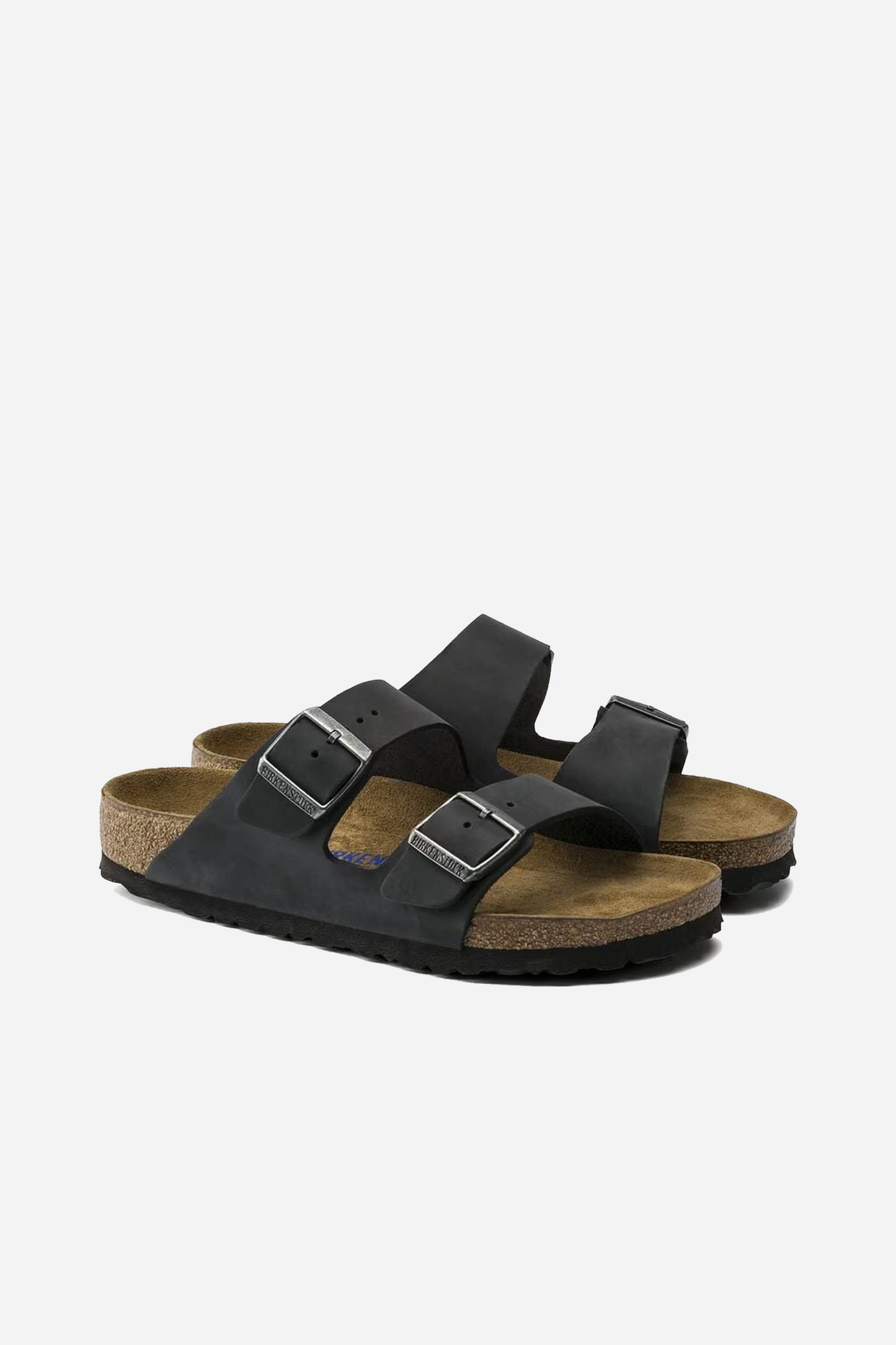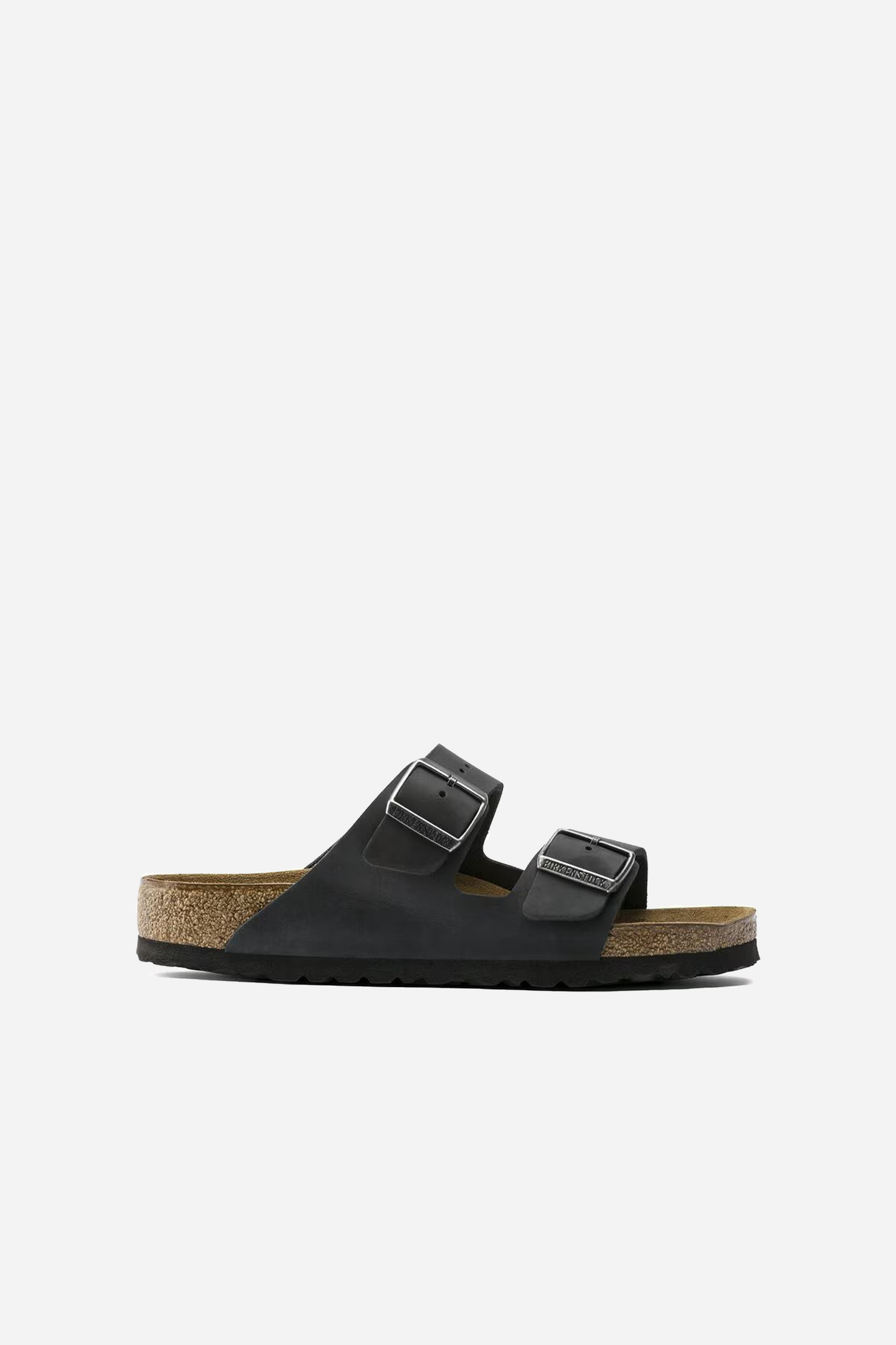 Arizona Narrow Fit Leather Black from Birkenstock. These sandals are made of Anatomically shaped cork-latex footbed that is particularly soft. They are designed with two leather straps that are adjusted with buckles. The buckles can be adjusted individually.