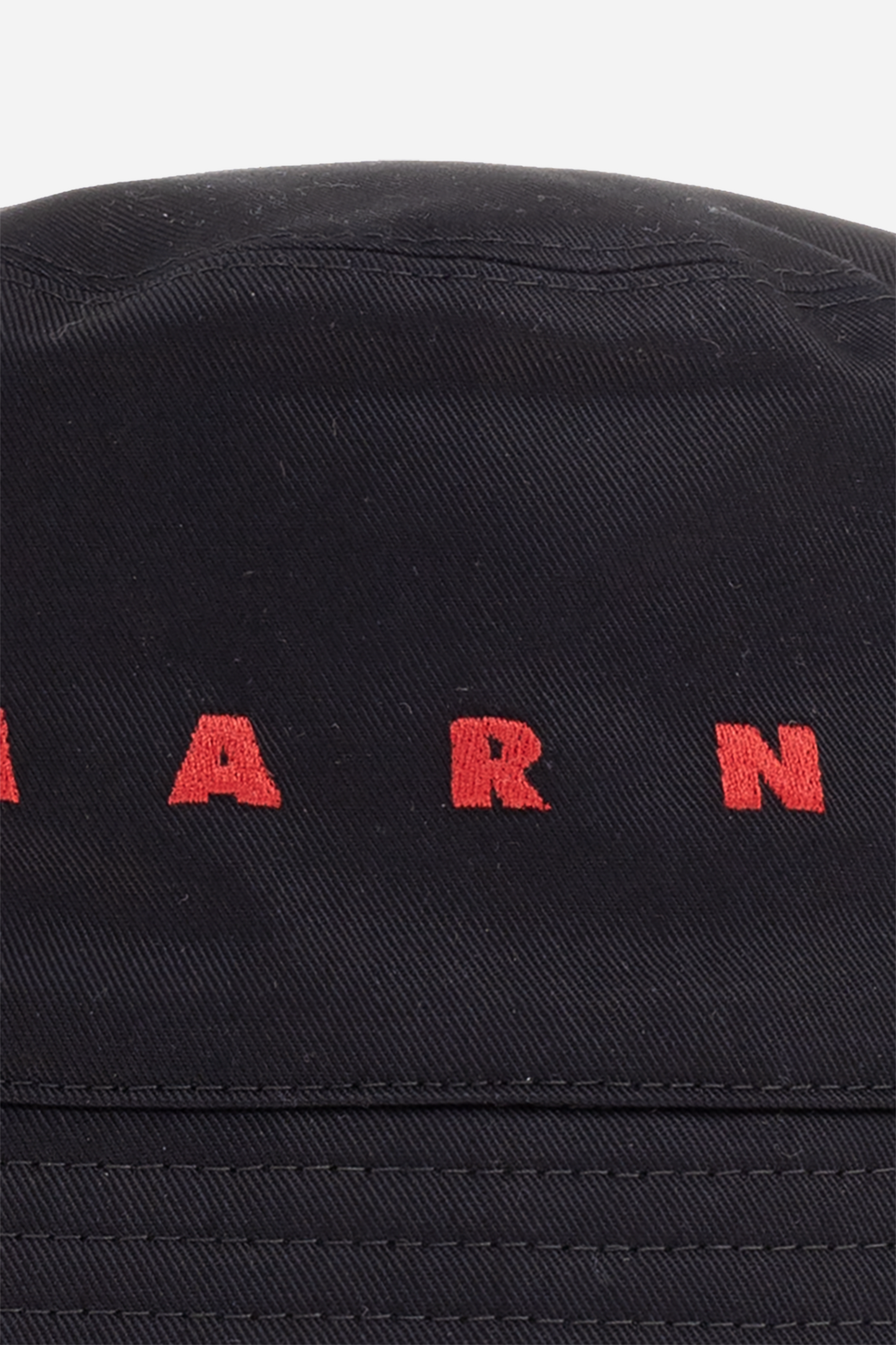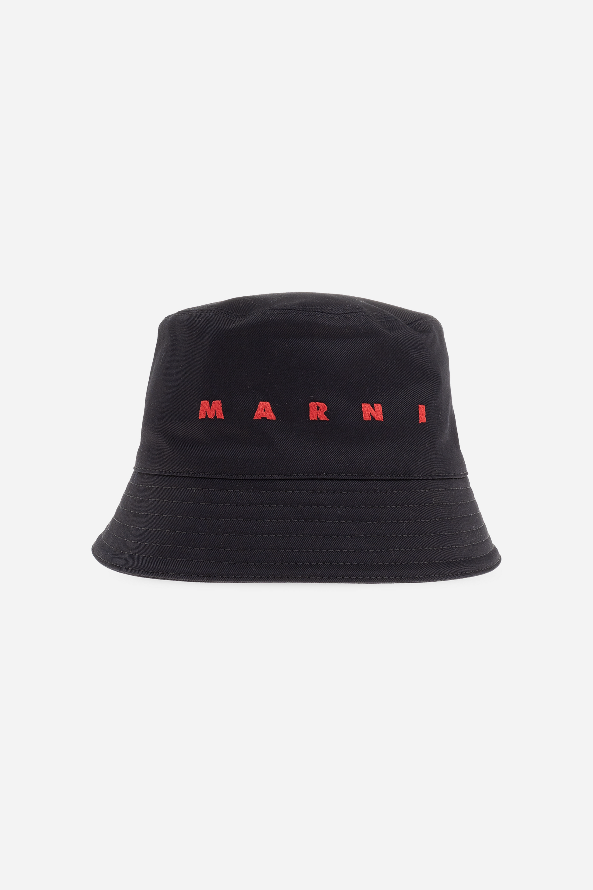 Bucket Hat Embroidered Logo Black from Marni. This hat is made of cotton. It is designed with an embroidered Marni logo on the front. The hat is Onesize.