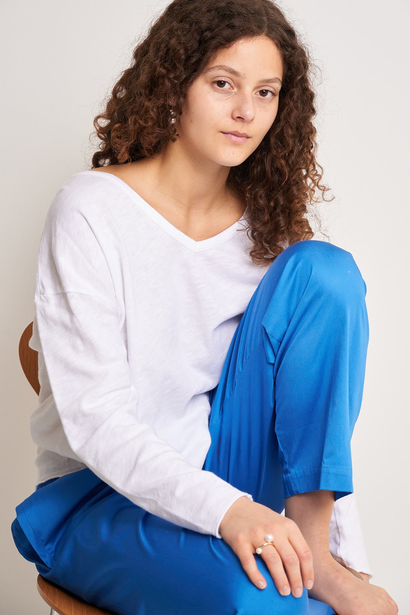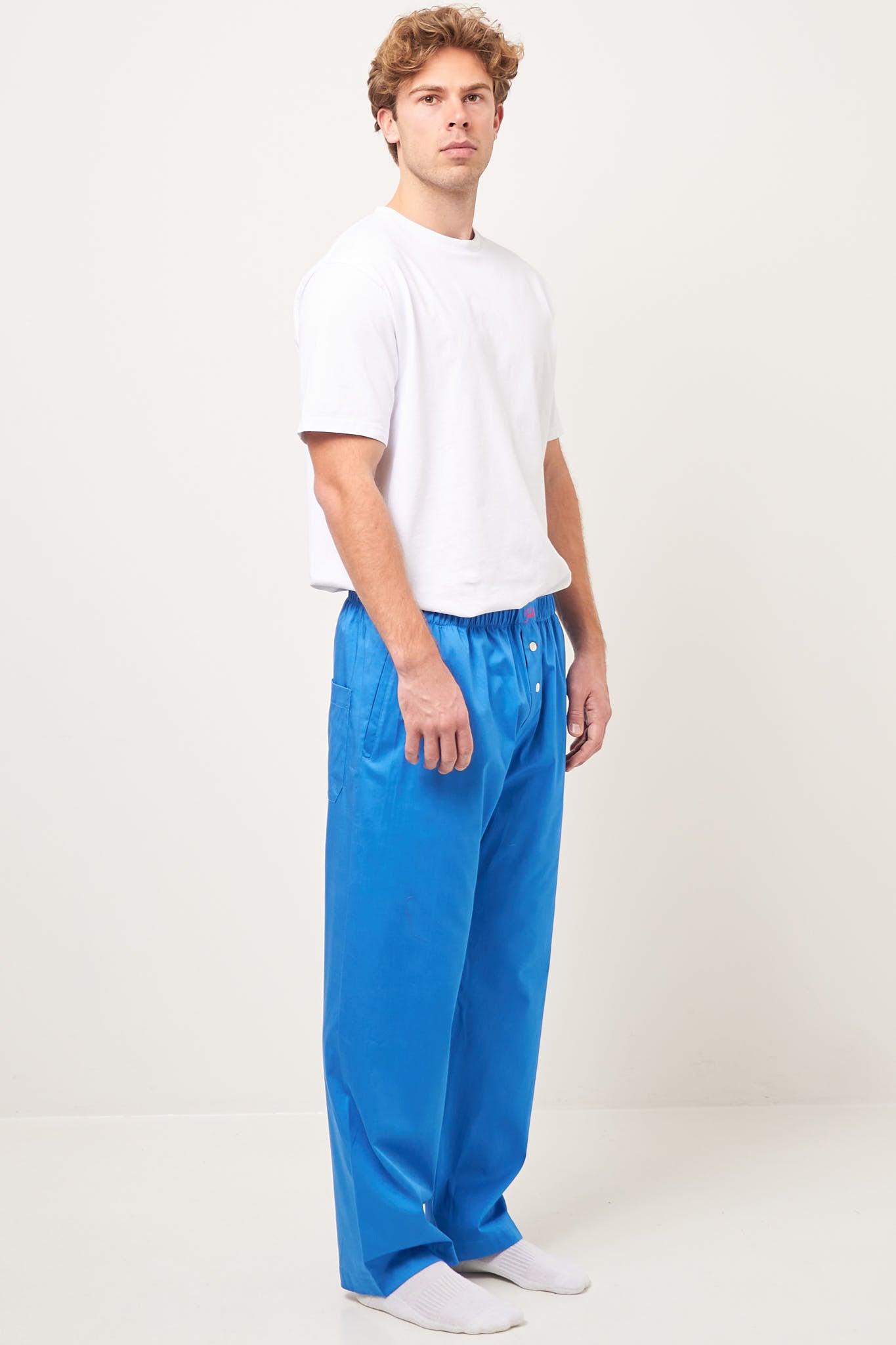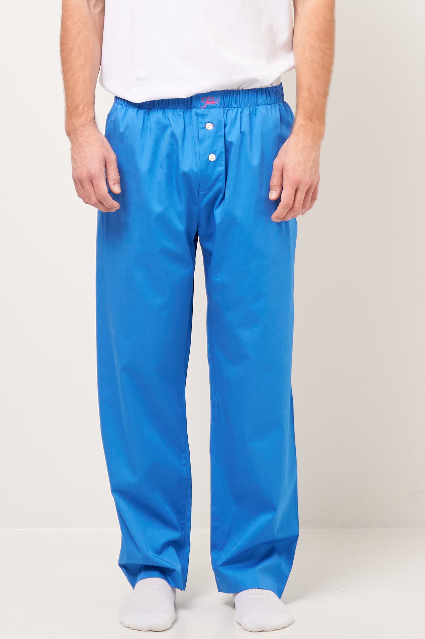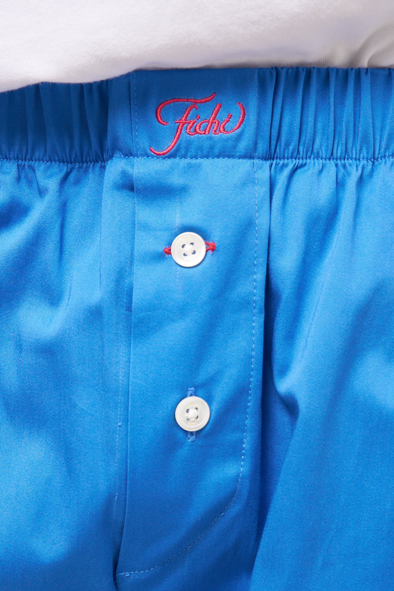Cobra Blue Long Boxers from Fichi. These pants are made of a soft cotton produced from deadstock material. The pants are designed with a Fichi logo on the elastic edge and have pockets on each side.