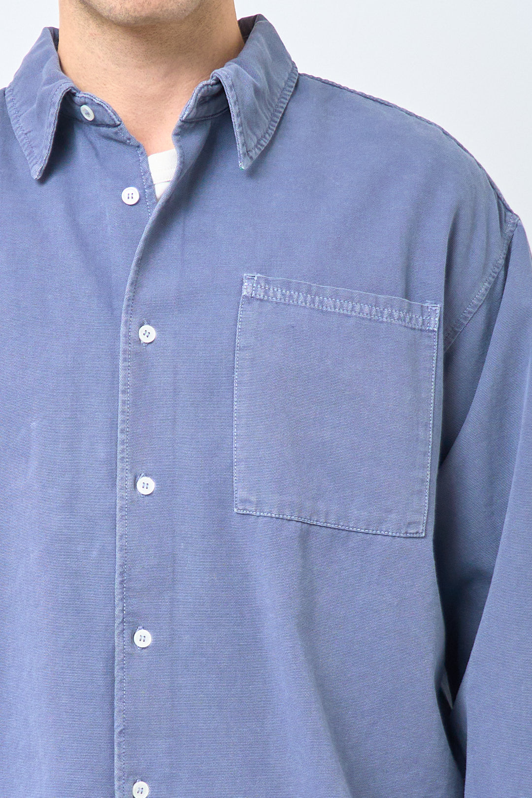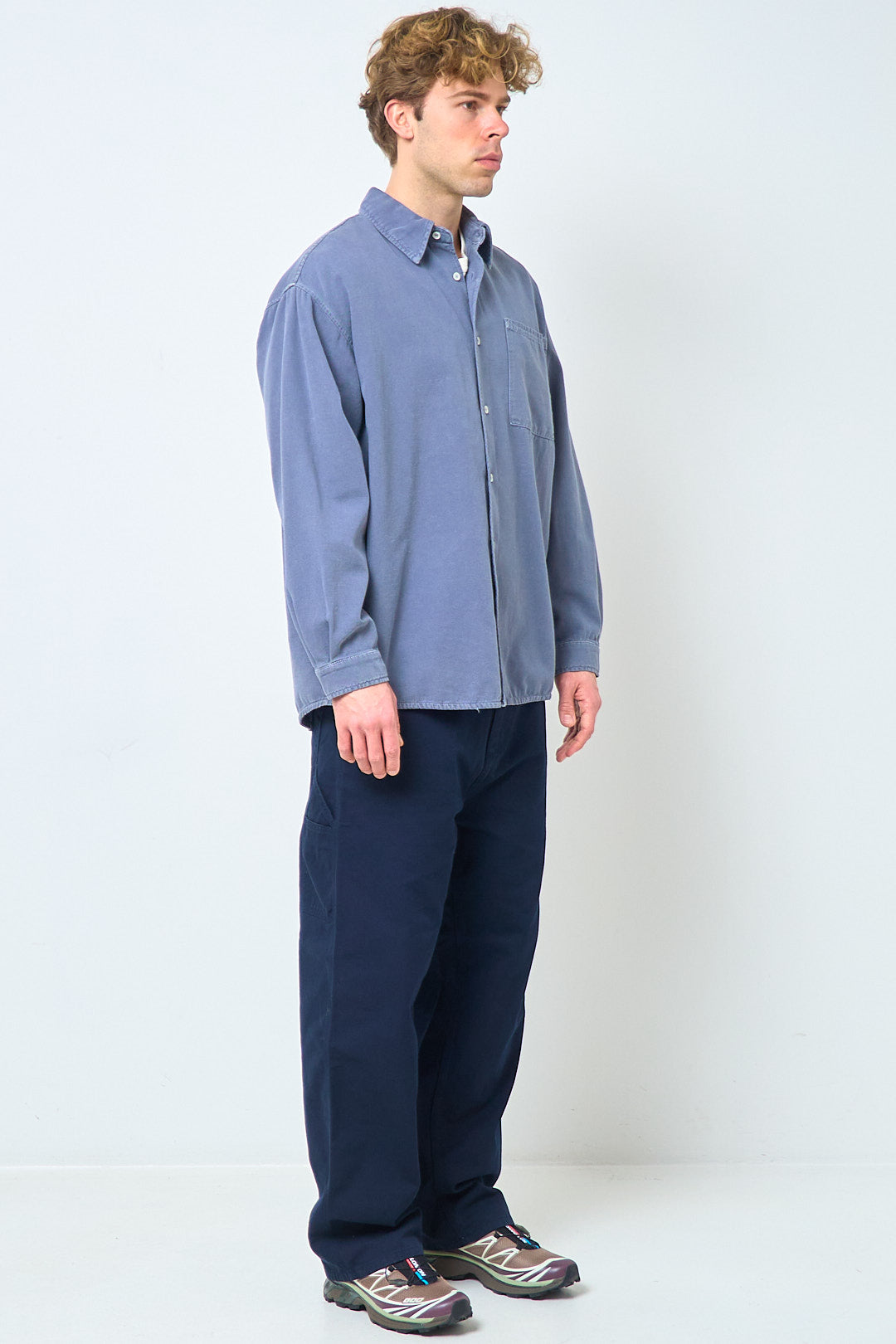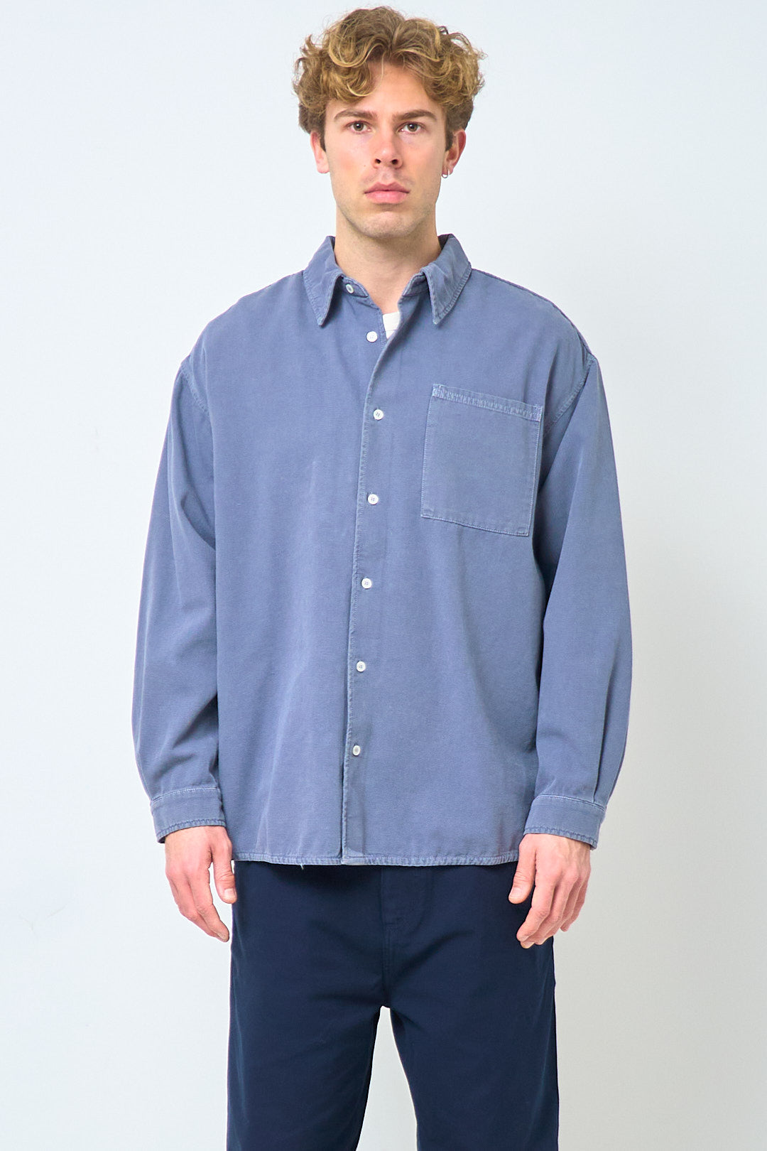 Lycaz Shirt Storm from American Vintage. This shirt is made of a heavy cotton. It is designed with a relaxed fit, collar and cuffs. The shirt closes with buttons at the front, has a pocket on the left chest, and a sewn-on American Vintage logo on the back.