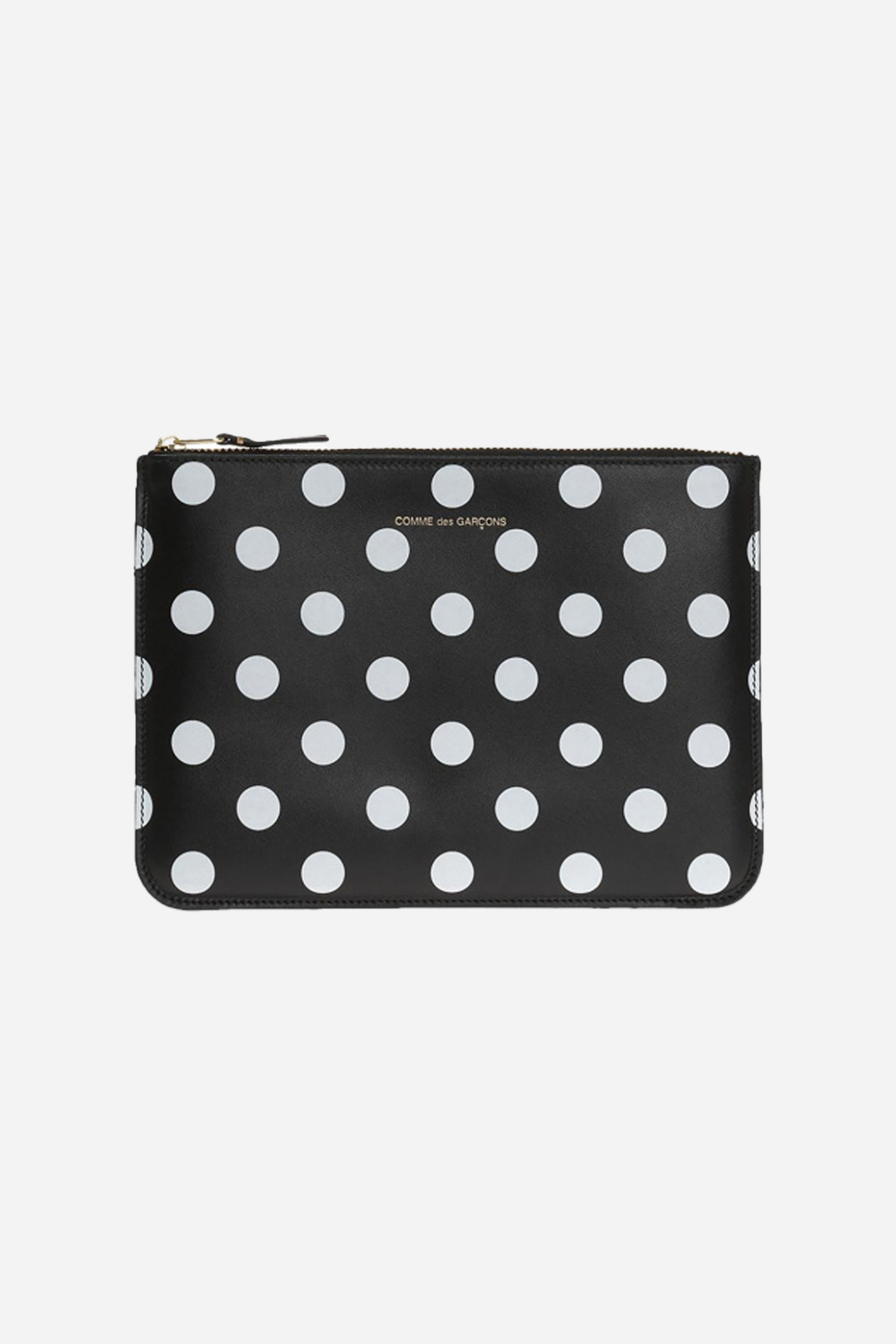 Wallet Polka Dot Printed Zip Pouch Black Large